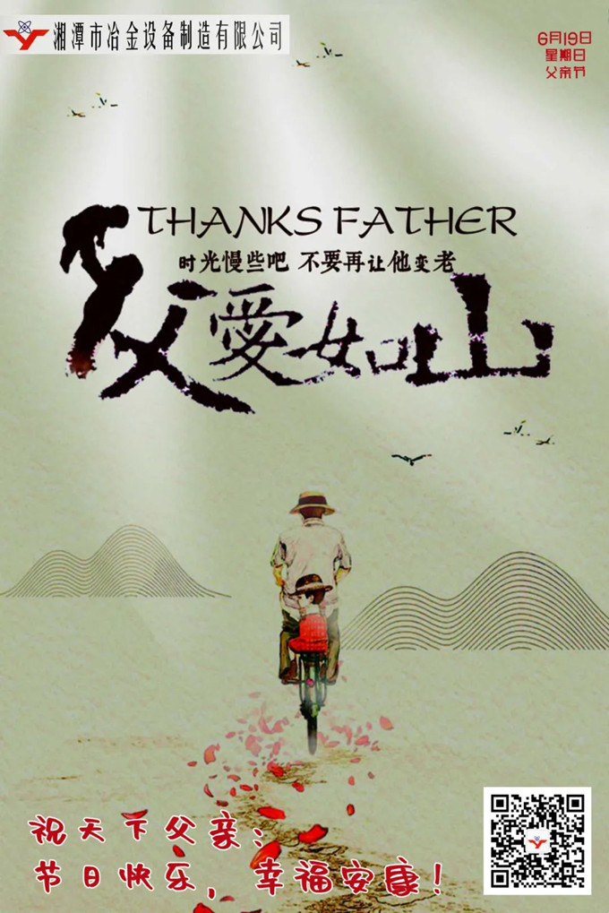 值此一年一度的父親節(jié)來(lái)臨之際,湘潭市冶金設(shè)備制造有限公司敬祝天下父親:節(jié)日快樂(lè)!幸福安康!